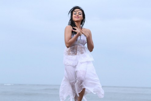 Sana Khan Hot and Spicy Pics in Various Position showing deep cleavage, navel and thighs.